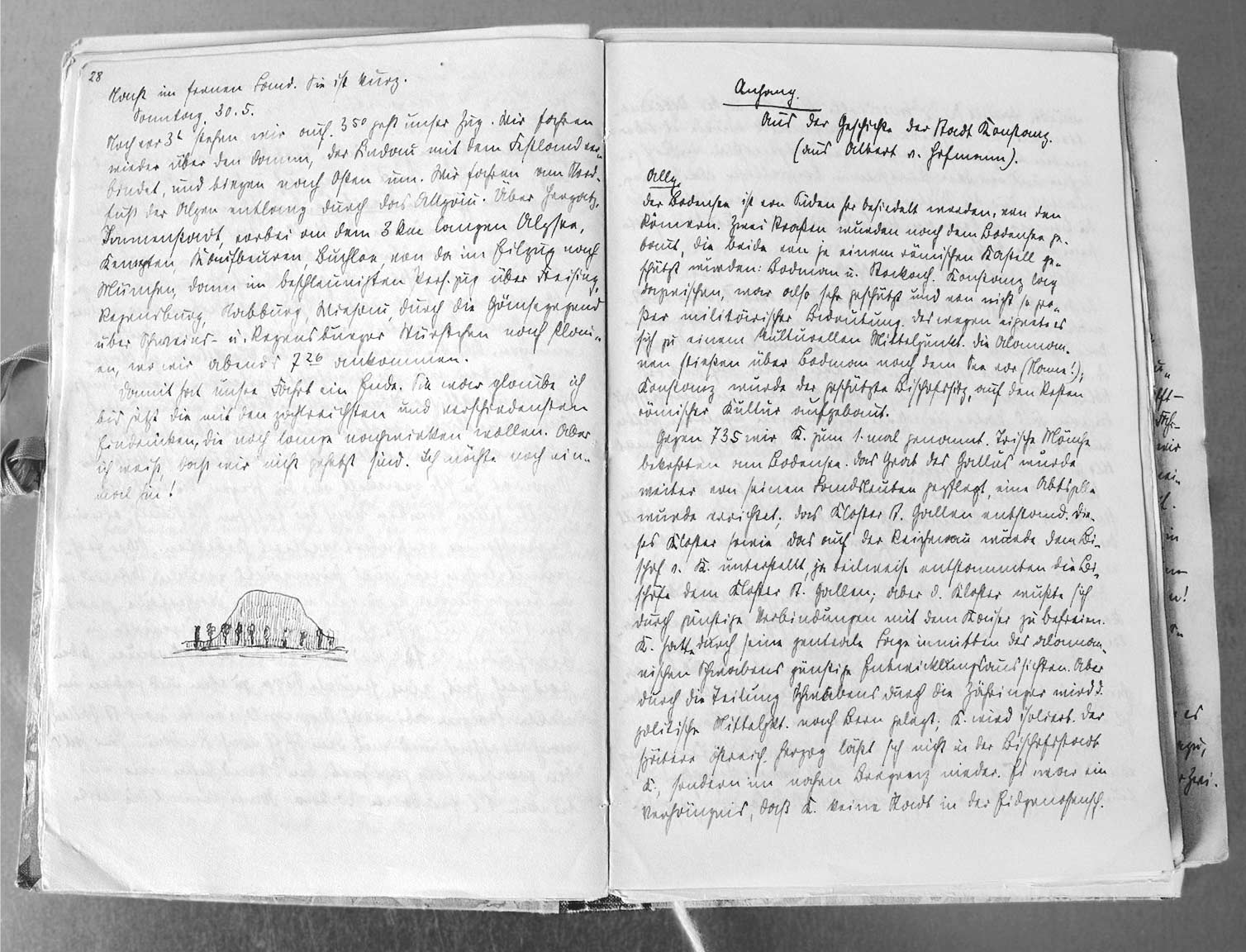 Wichtigster Bestandteil der jugendbewegten Lebensweise war die Sehnsucht nach Erlebnissen in der Fremde und die Abenteuerlust, die auf großen Wanderfahrten quer durch Europa gestillt wurde. Die Fahrten der Sächsischen Jungenschaft führten meist nach Südosteuropa, und so heißt es in einem Fahrtenbericht von Kurt Mothes zu seinen Erfahrungen in Kroatien 1928: »[…] Ein neues Bimmelbähnchen, das durch Primelwiesen an Krokus und Christrosen vorbeiführt, kreisrunde Einbrüche in den Kalkboden (Dolinen), auf deren Grund die Bauern Kartoffeln pflanzen – und dann überraschend wieder deutsche Laute, ein deutsches Landstädtchen, inmitten einer grossen Doline, einer ›Polje‹ gelegen, Gottschee. Hier holen wir Atem für künftige Anstrengungen. Die Leute sind ernst, ziemlich zurückhaltend zu uns. Sie haben in dem neuen Staate Jugoslawien ihre alte Vormachtstellung eingebüsst, und das wurmt! […] Am nächsten Tag ziehen wir noch durch deutschsprechendes Gebiet in der Gottscheer Polje, elende Dörfer mit mutloser Bevölkerung, die kaum den deutschen Gruss zu bieten wagt, wo man uns schließlich für Beauftragte Deutschlands hält, den Boden für die Okkupierung auszumessen. [… Reise zur Insel Rab] Hier geniessen wir noch ein paar Tage das Meer, die Stille, die Farben, ruhen aus von der Fülle des immer Neuen, das uns Tag für Tag überwältigte. Hier erleben wir den Süden in seiner Pracht und seiner Fremdheit. Hier leuchtet, jubelt, braust, lacht alles, und nur im Traum denken wir an den Norden, an die Heimat, wo die Nebel wohnen, wo sich Licht und Schatten zu einem Grau vermählen, wo alles gedämpft, ruhiger, nüchterner – aber eben heimatlich ist. […] Daheim laufen wir durch dicken grossflockigen Neuschnee. Doch die Sonne der Adria brennt noch auf unserer Haut – und in unseren Herzen – und dort wird sie nie mehr aufhören können mit leuchten.«